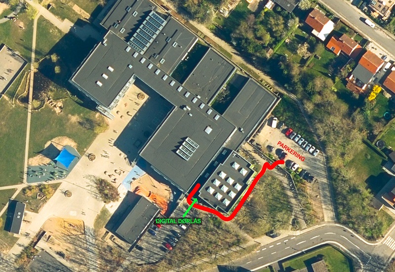 Sådan finder du vej fra Klostermarksskolens P-plads til festsalen