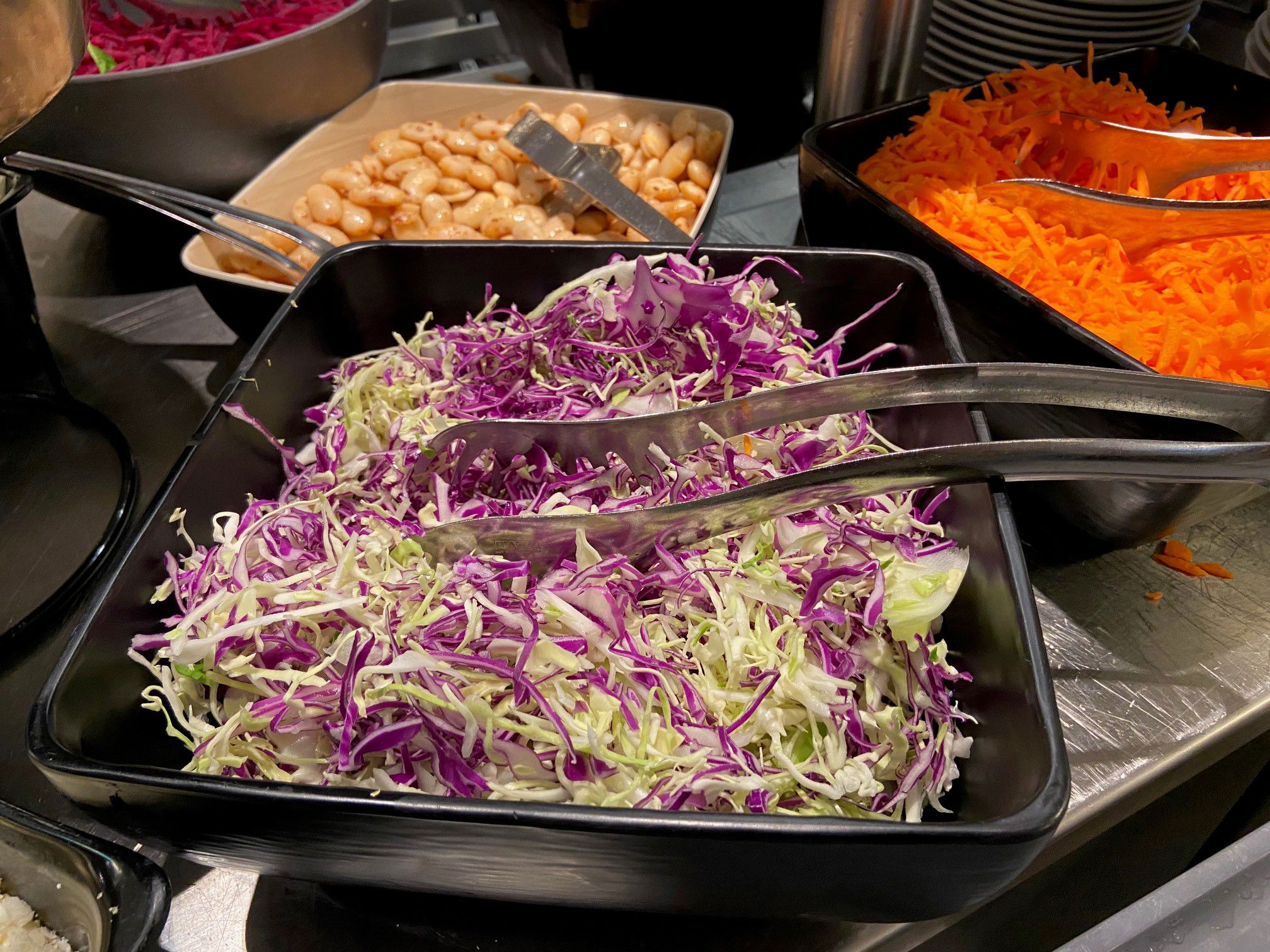 Rester af f.eks. peberfrugter fra salatbaren blender han og kollegerne de følgende dage i f.eks. supper.