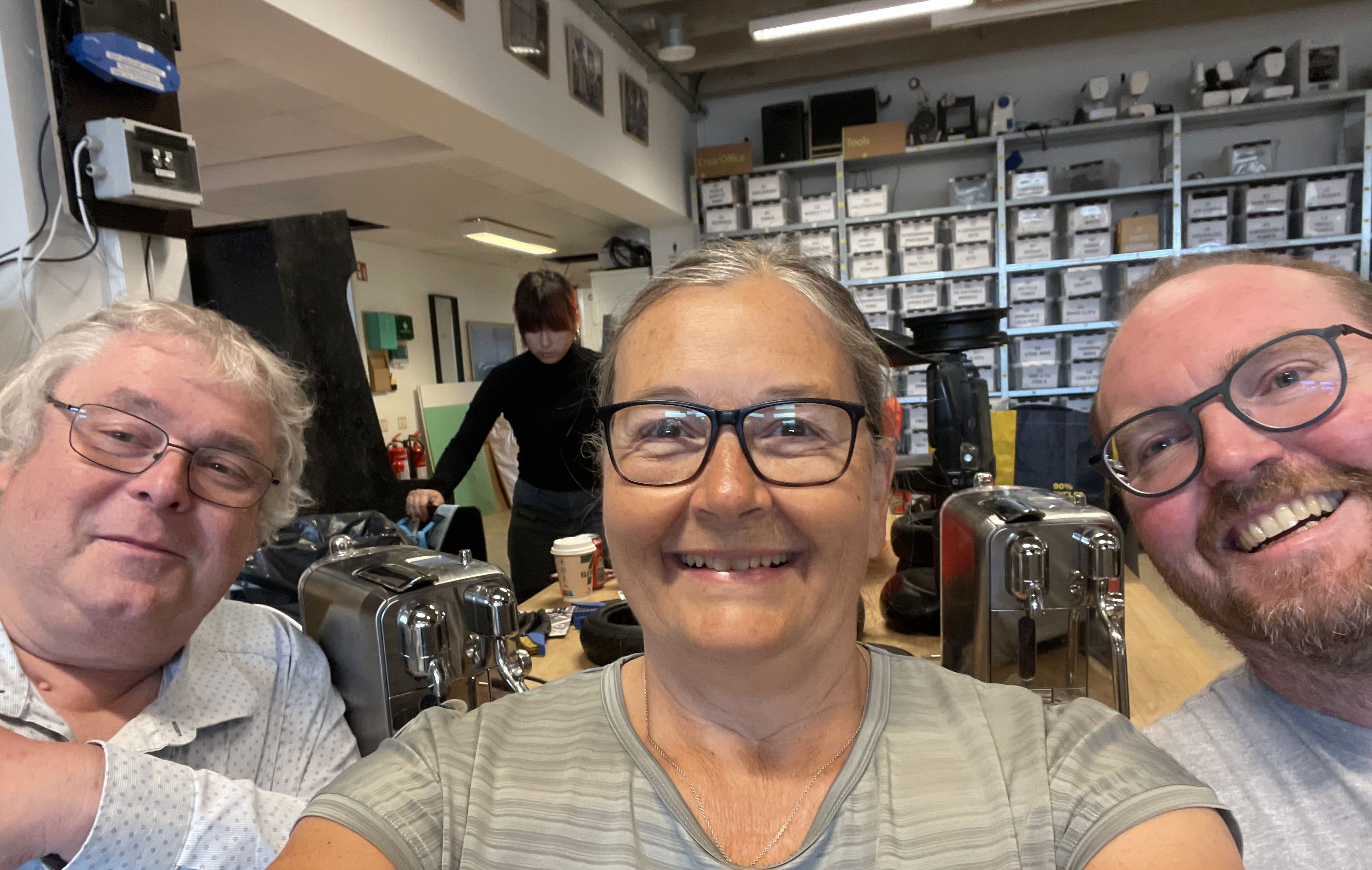 ”Jeg var lidt nervøs ved at dukke op, da jeg ikke er særligt teknisk anlagt. Men jeg tog derhen, greb fat i en frivillig og fortalte min uheldige historie om kaffemaskinerne. Den frivillige tændte på min fortælling og gik i gang med at skille en af maskinerne ad. Det var udfordrende – fire fiksere endte med at være på opgaven.”