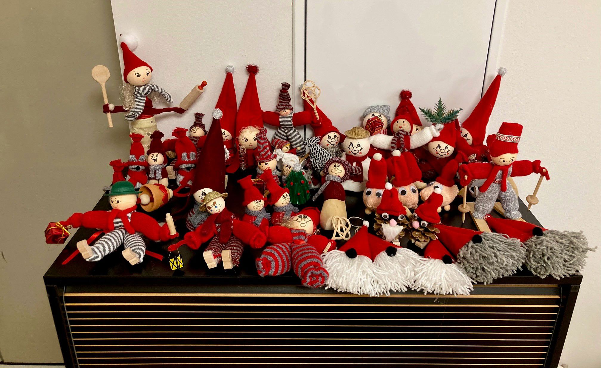 I Hjerterummet er de håndgjorte nisser linet op med lygter, kageruller og tæppebankere i hænderne. På plejecentrets julebazar bliver de solgt. Pengene går til kommende aktiviteter for beboerne.