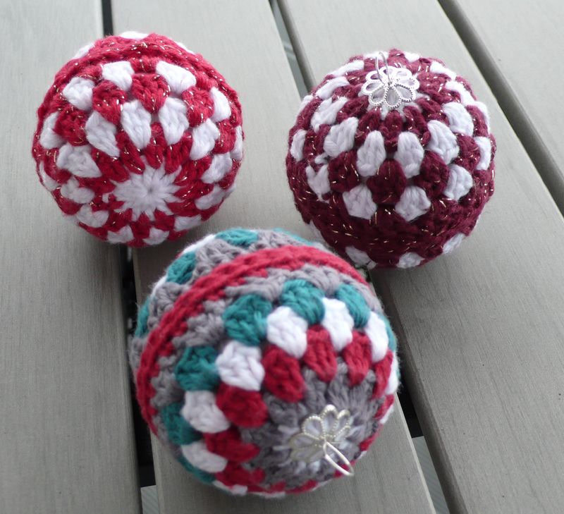 - Hvorfor netop julekugler?”Jeg søger hvert år efter sjove og anderledes hækleopskrifter. Sidste år var det trommer og slikstokke. I år blev det kugler. De ligner såkaldte oldemorfirkanter, som er populære for tiden.”