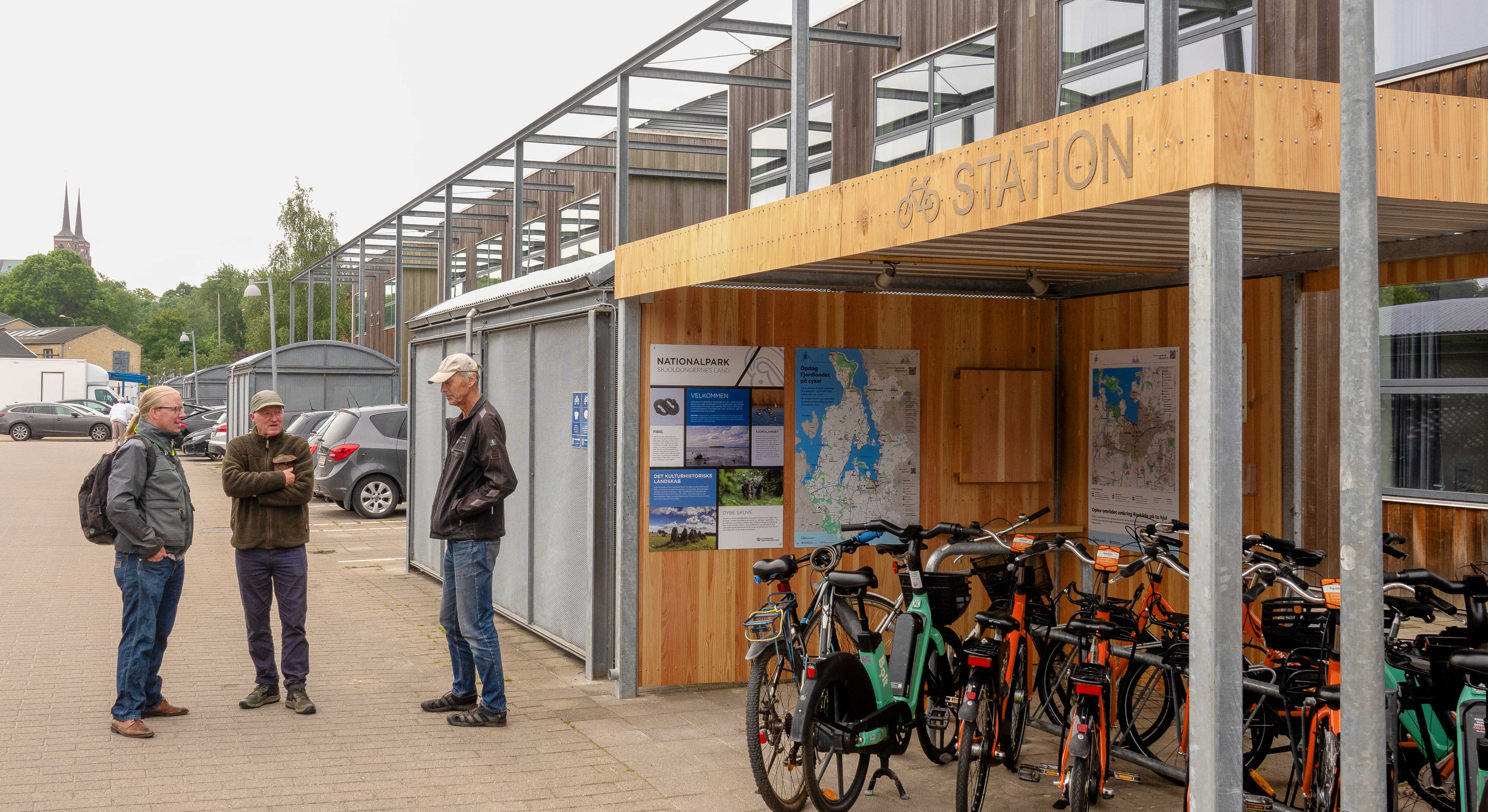 Her kan man leje bycykler, få luft i dækkene, få vand i drikkedunken, låne cykelværktøj og finde information om cykelruter.