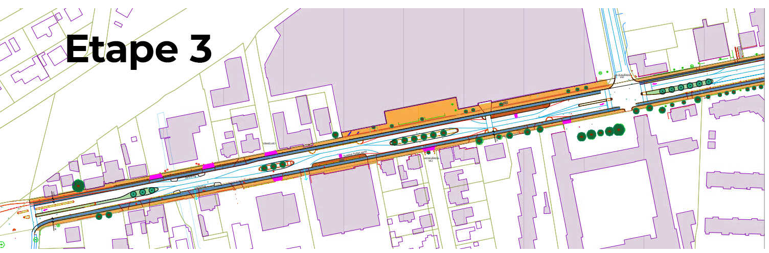 Når etape 3 er færdig, vil den have flere midterrabatter med grønne træer, bedre bustoppesteder og lysregulering i fodgængerovergangen til Ros Torv.