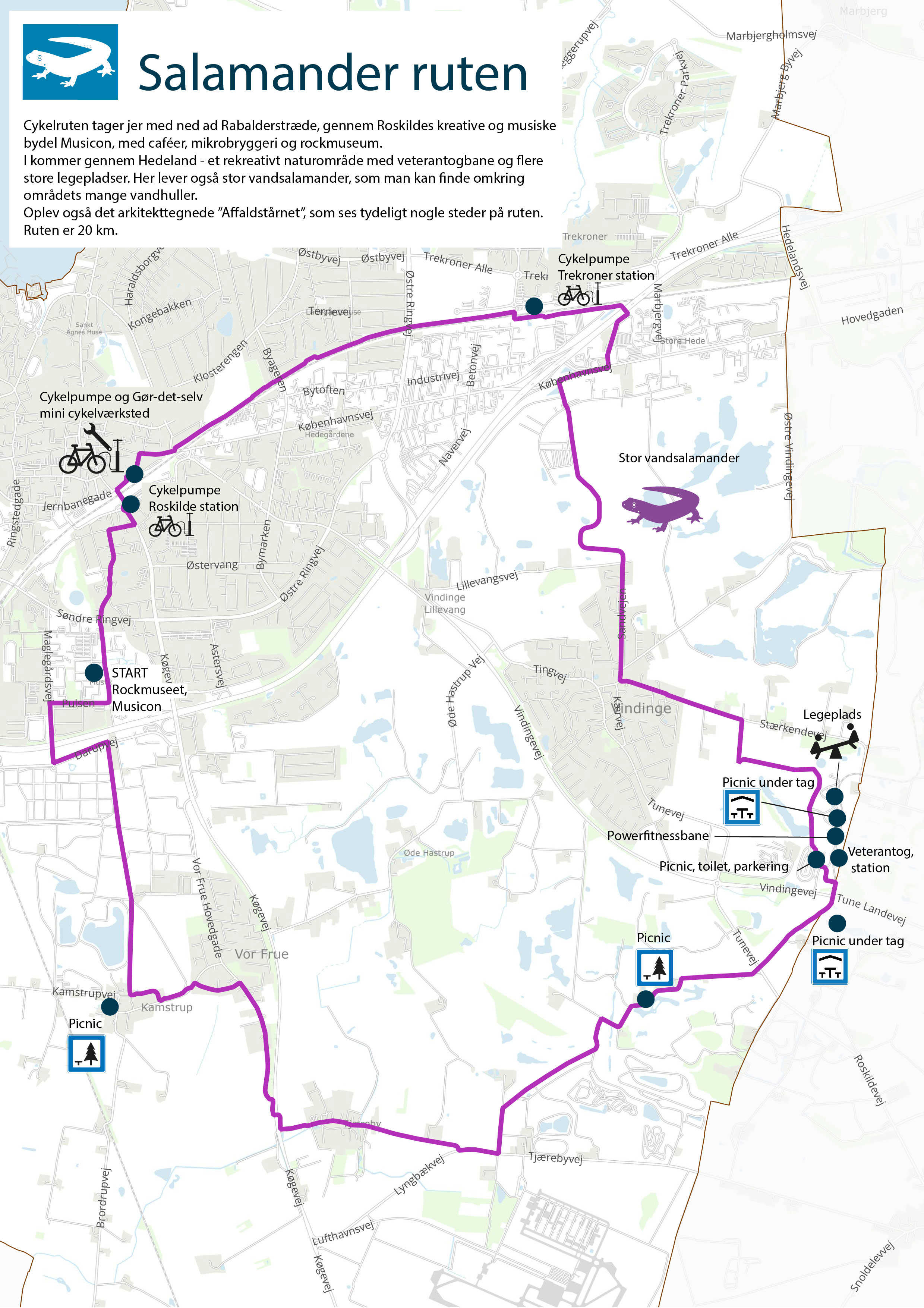 Cykelruten tager jer gennem Roskildes kreative og musiske bydel Musicon og videre til Hedeland.
