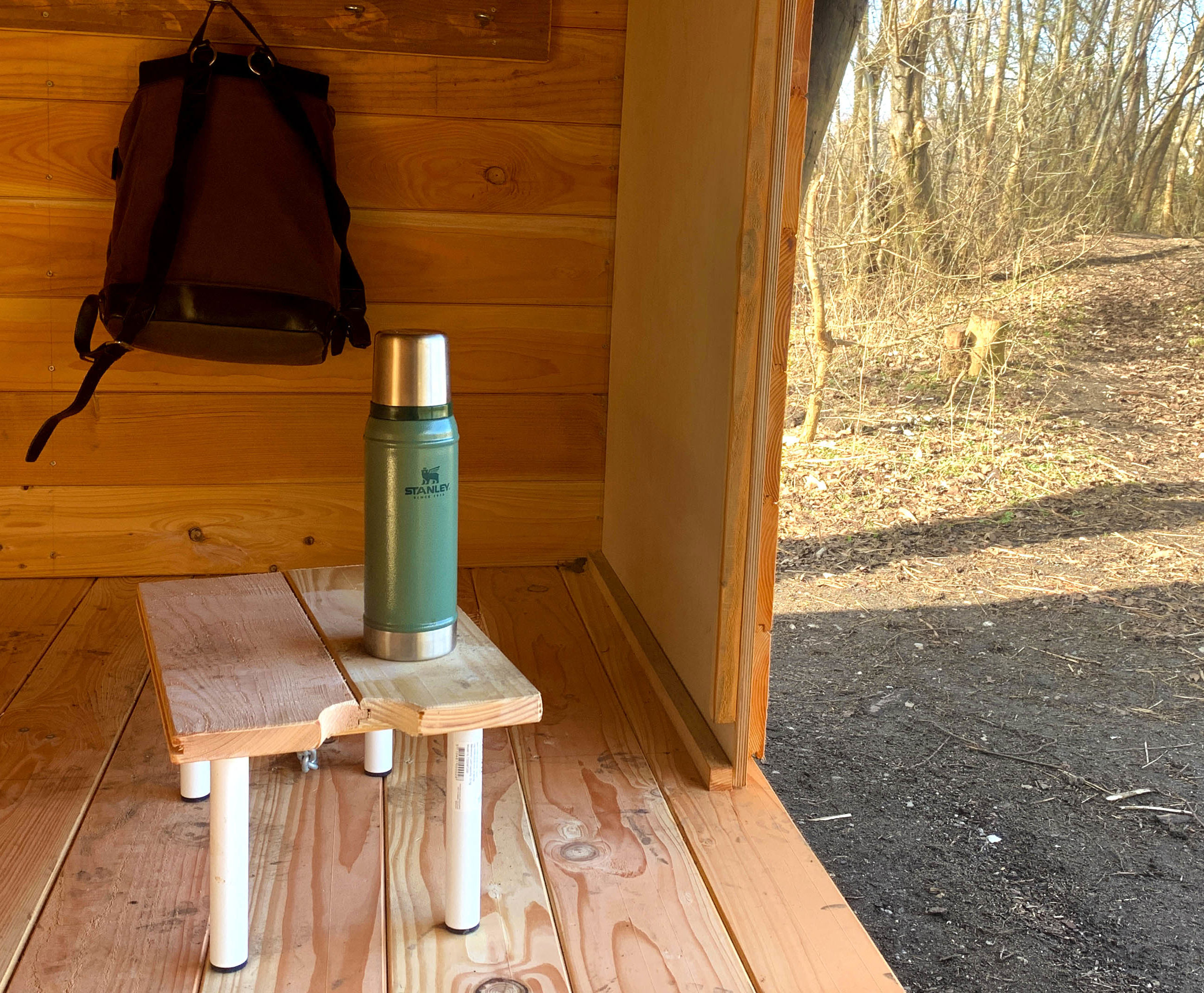 Shelterne har en lævæg, der skal gøre opholdet mere behageligt i blæsevejr, og der er installeret en bagageluge – som også kan bruges til ind- og udgang for børnene. I shelterne er der også tebord og kogegrejskasse samt hylder og kroge, der gør indretningen sjovere og mere praktisk.