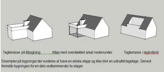 Hvis du på din ejendom alene må have én eller 1½ etage, kan du ikke umiddelbart forvente, at du i 1.sals højde kan opnå tilladelse til at etablere altan eller tagterrasse.