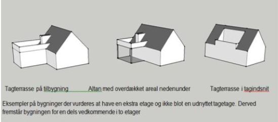 Hvis du på din ejendom alene må have én eller 1½ etage, kan du ikke umiddelbart forvente, at du i 1.sals højde kan opnå tilladelse til at etablere altan eller tagterrasse.