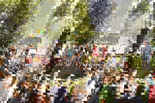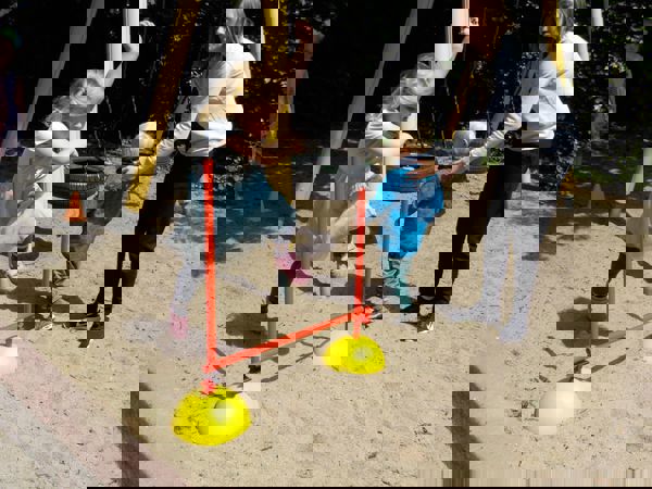 På legepladsen er vi sammen og arbejder med at være en del af det store fællesskab, hvor store og små øver sig og hjælper hinanden.