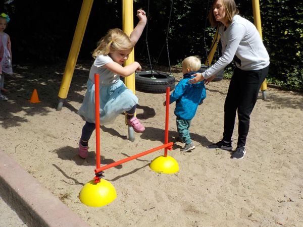 På legepladsen er vi sammen og arbejder med at være en del af det store fællesskab, hvor store og små øver sig og hjælper hinanden.