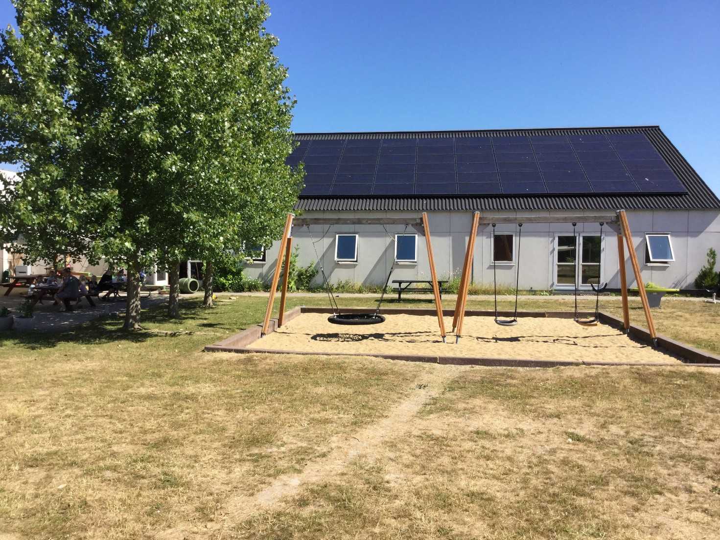 Vi har en stor og dejlig legplads, som er opdelt i en børnehave- og en vuggestuedel. Vores legeplads er indrettet, så børnene har mange muligheder for at fordybe sig.