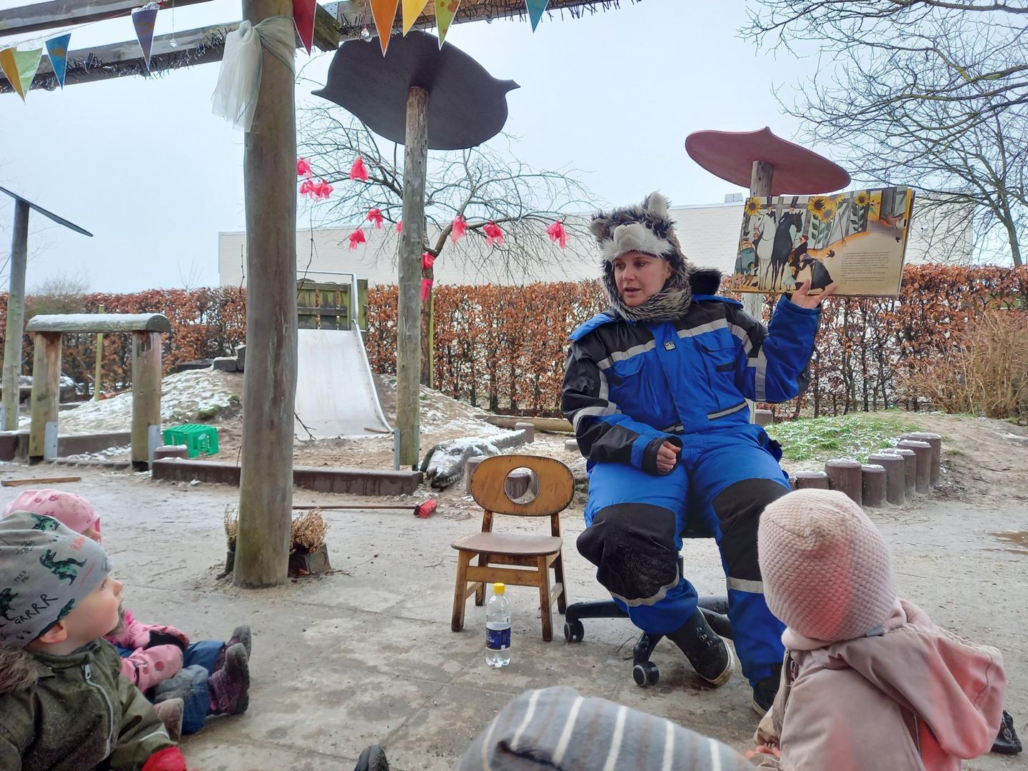 Vi vægter stor brug af uderummet og har indrettet værksted på legepladsen, hvor børnene kan tilgå kreative materialer og være skabende. Vi har et bålhus og køkkenhaver og høster gerne sammen med børnene, så de ser processen fra jord til bord. Vi er ved at skabe et stykke eng på plænen, for at lære børn om biodiversitet.