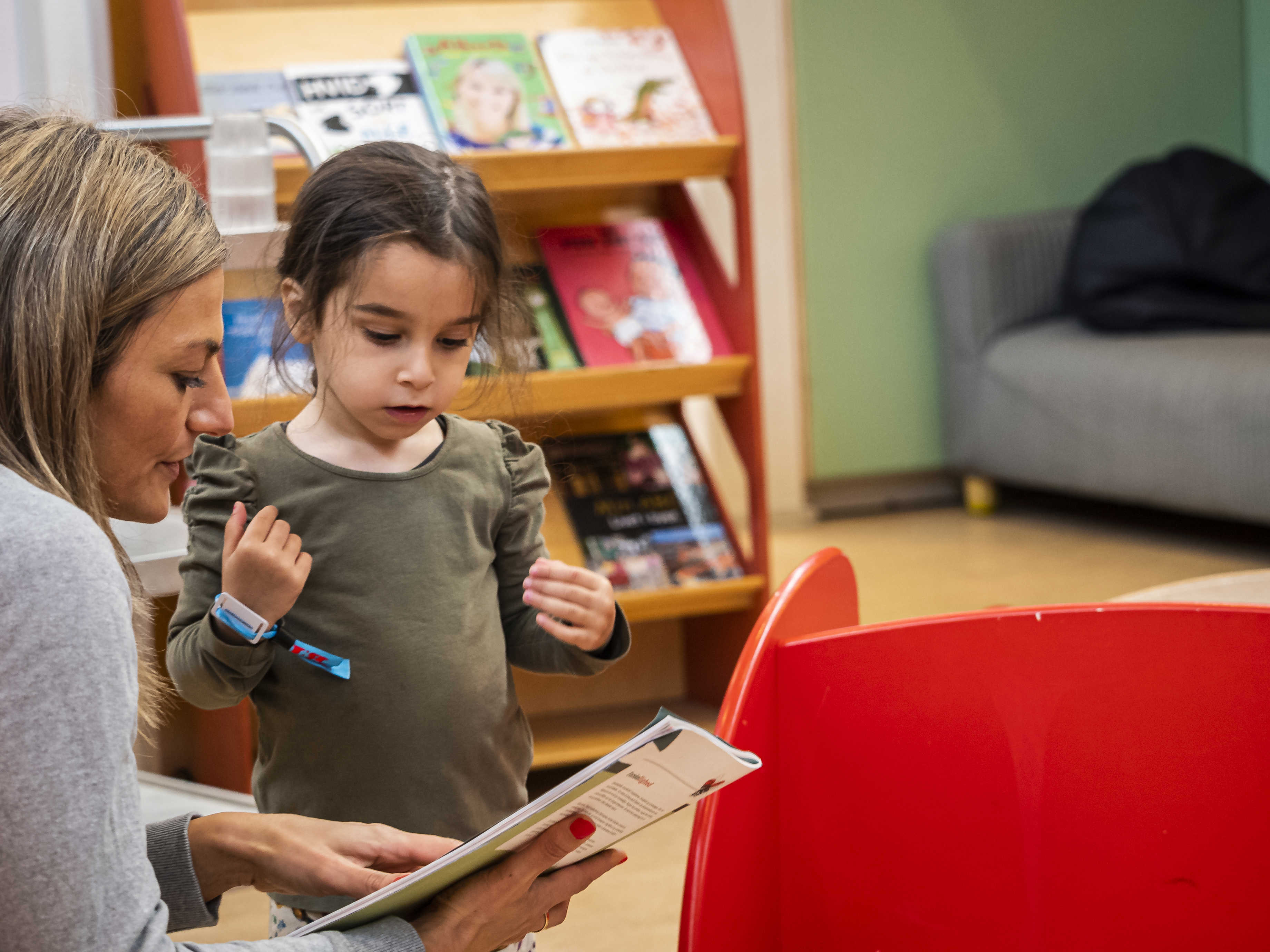 - Vi har også et mindre bibliotek, hvor børn og forældre kan låne bøger med hjem.