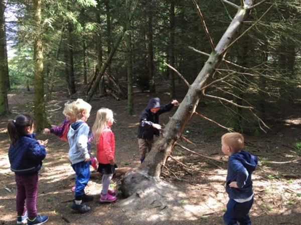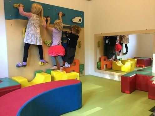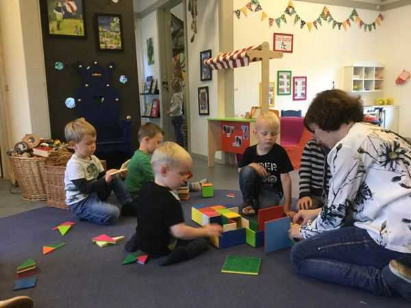 Vores storegruppe i børnehaven er på tværs hver dag fra kl. 9-13 og alle andre grupper laver f.eks. rytmik, tager på ture eller arbejder med sporforløb justeret efter alder og udvikling. Dette bevirker, at der er muligheder for at spejle sig i andre børn, som er længere f.eks. i deres sproglige og motoriske udvikling, men også at lege med yngre børn for at styrke rummelighed og udvikling på tværs.