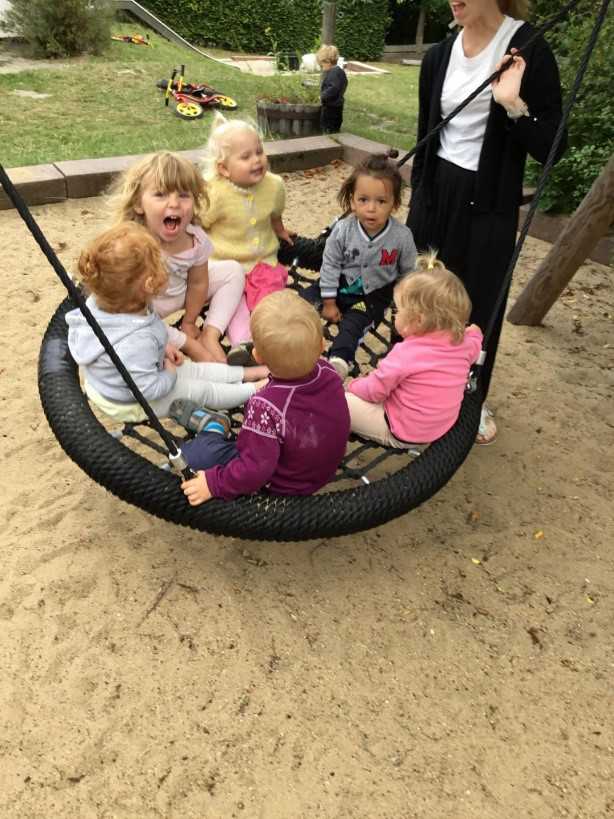 Legepladsen er inddelt i en vuggestueafdeling og en børnehaveafdeling.