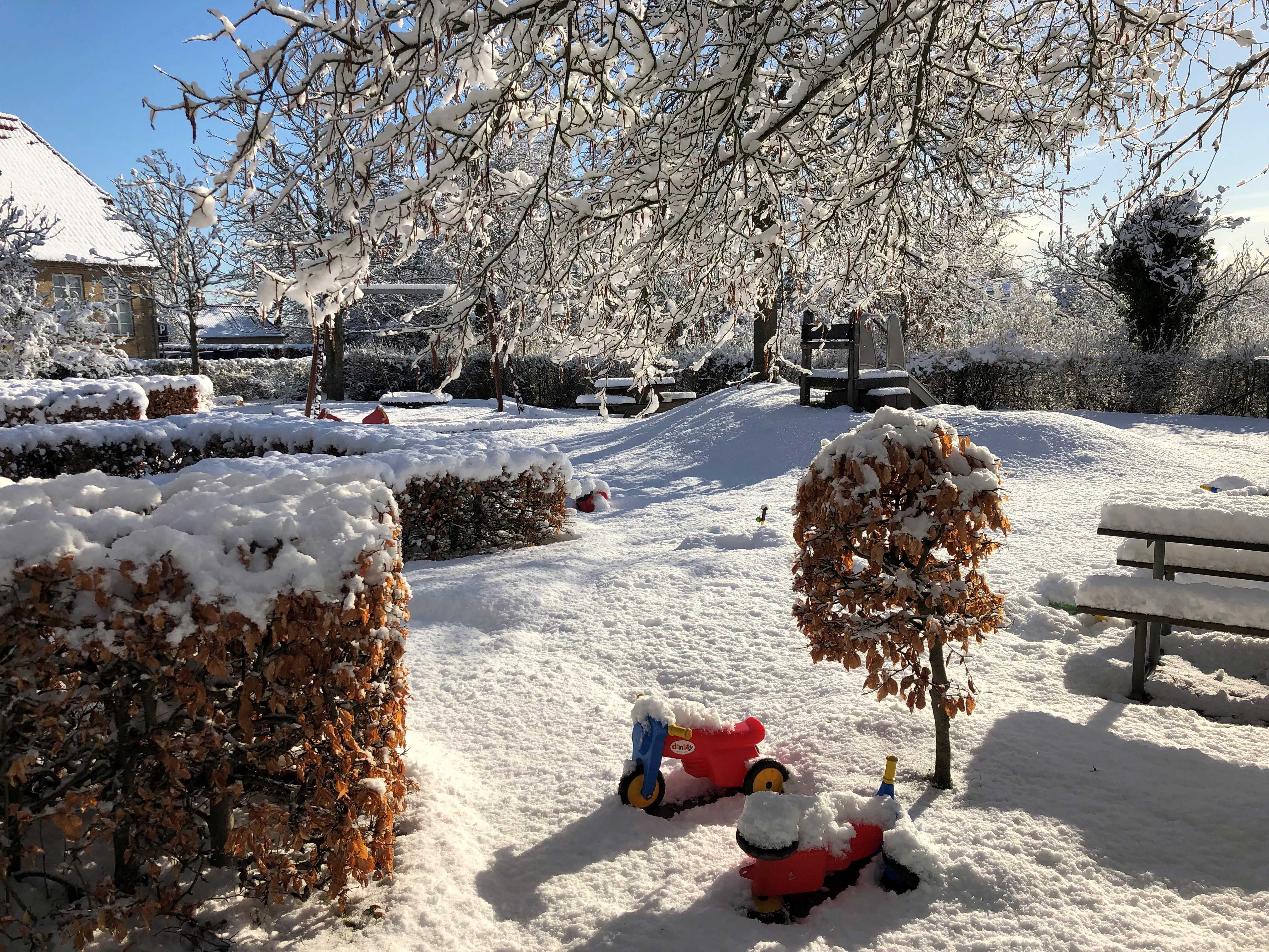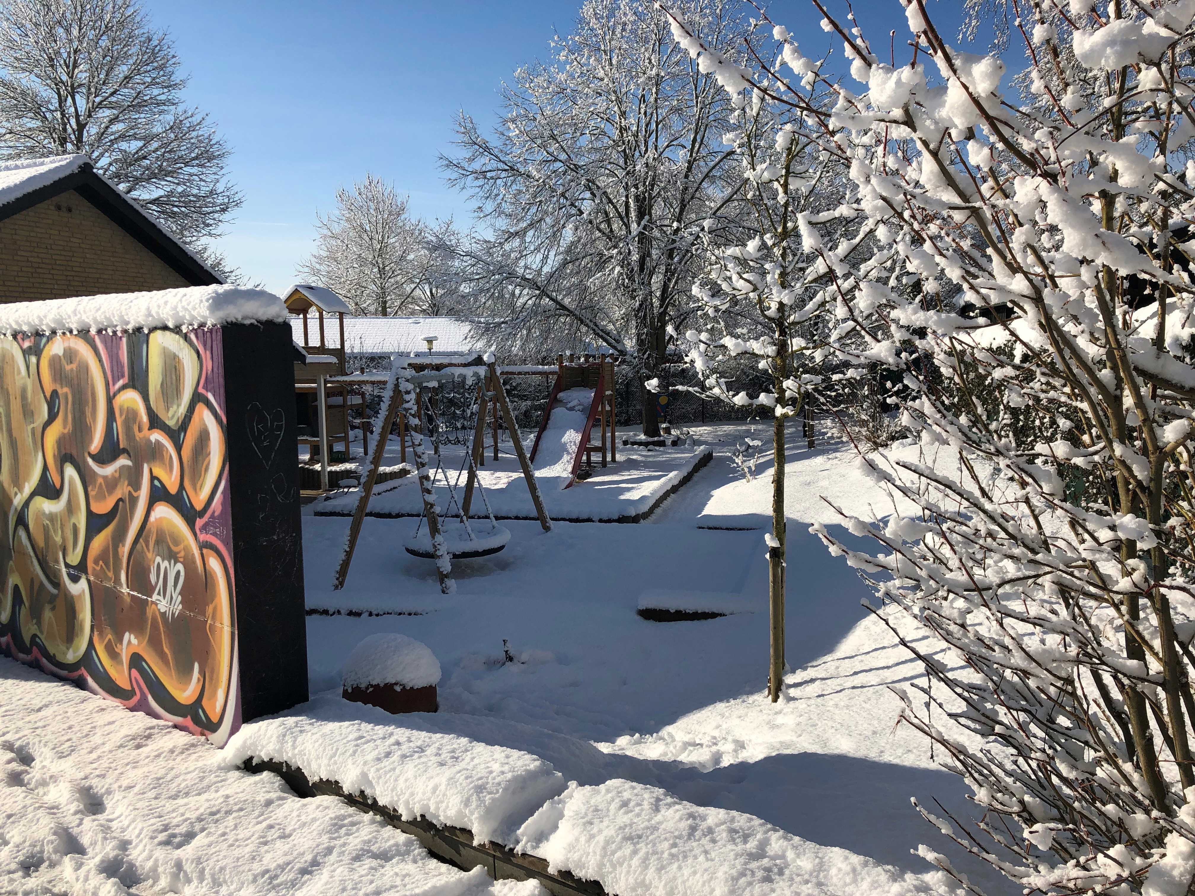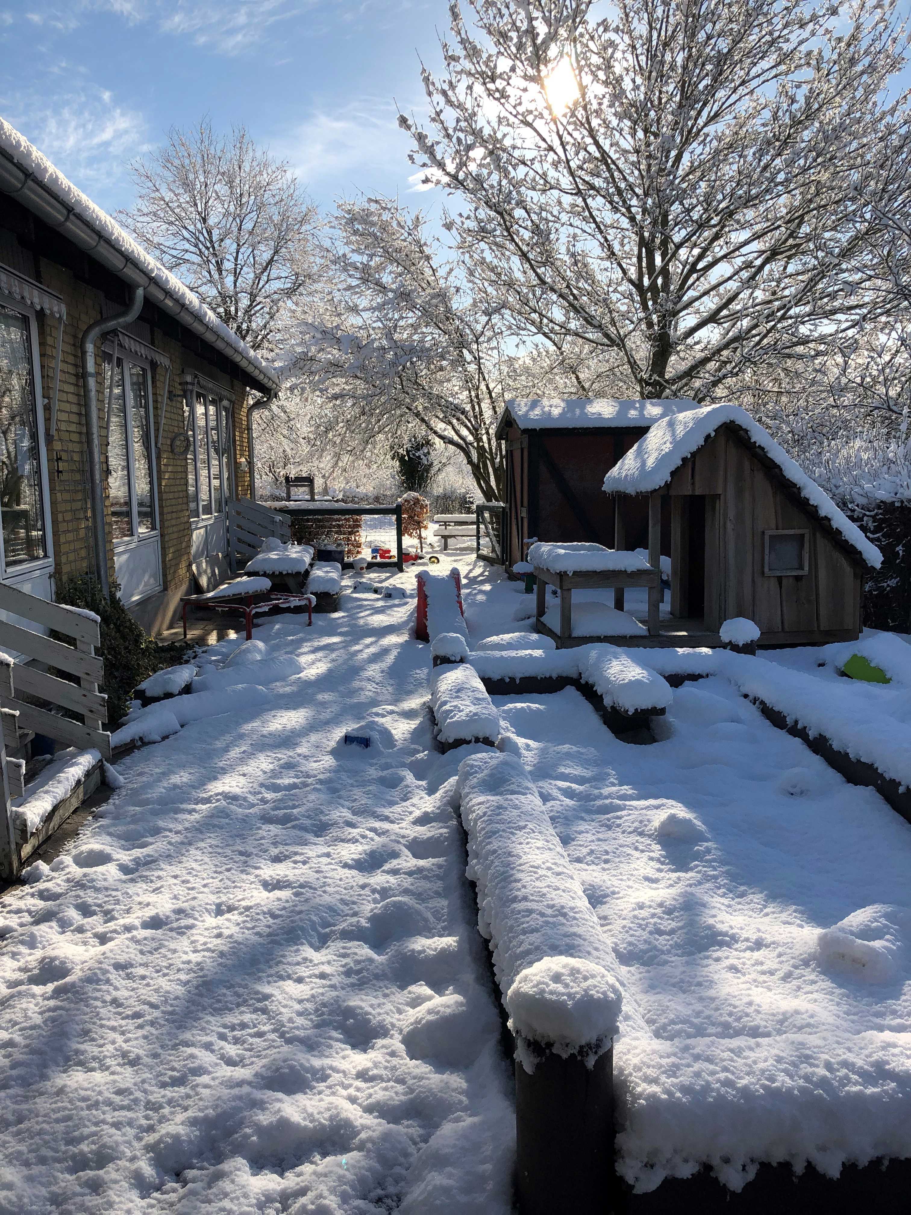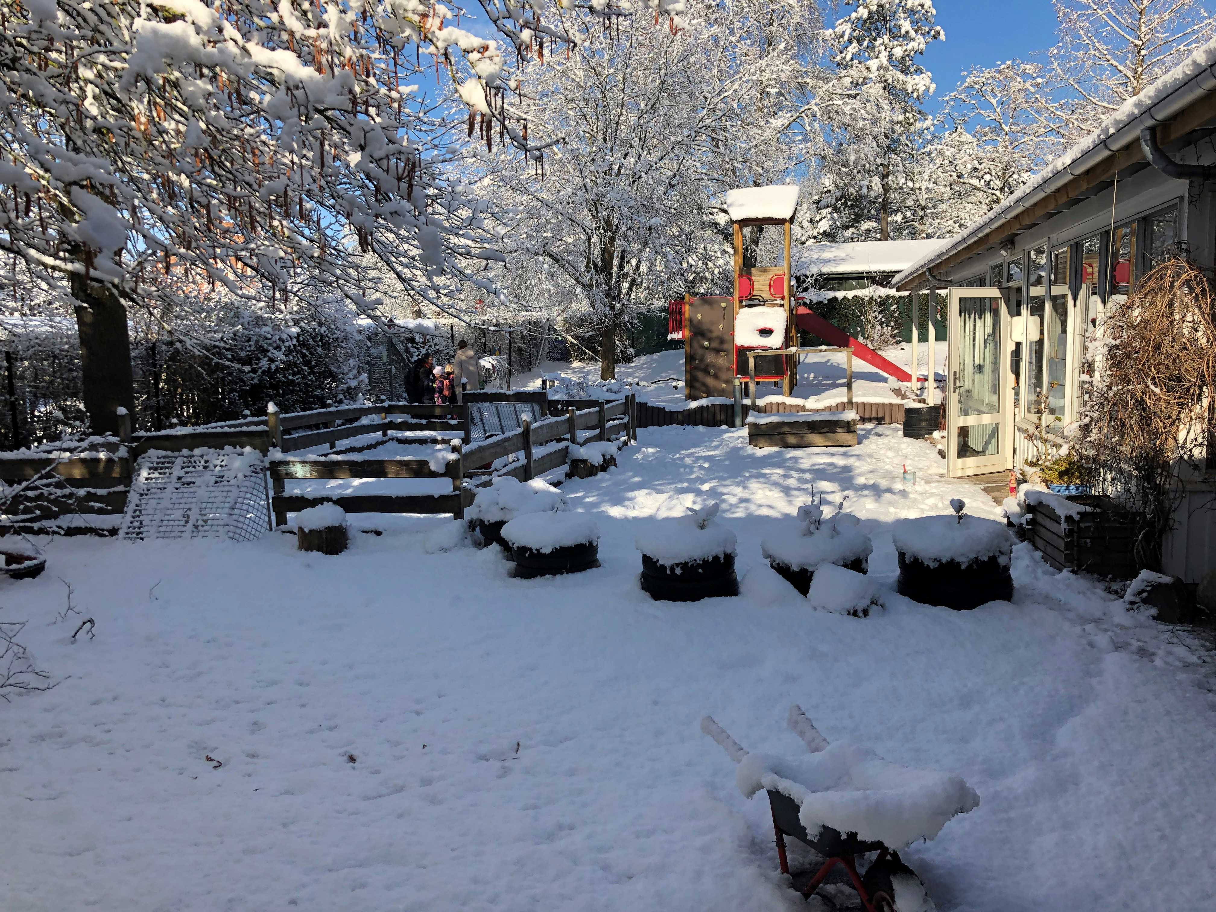Vuggestuen og børnehaven har hver deres hus med hver deres selvstændige legeplads, hvor der er gode muligheder for masser af udendørs lege.