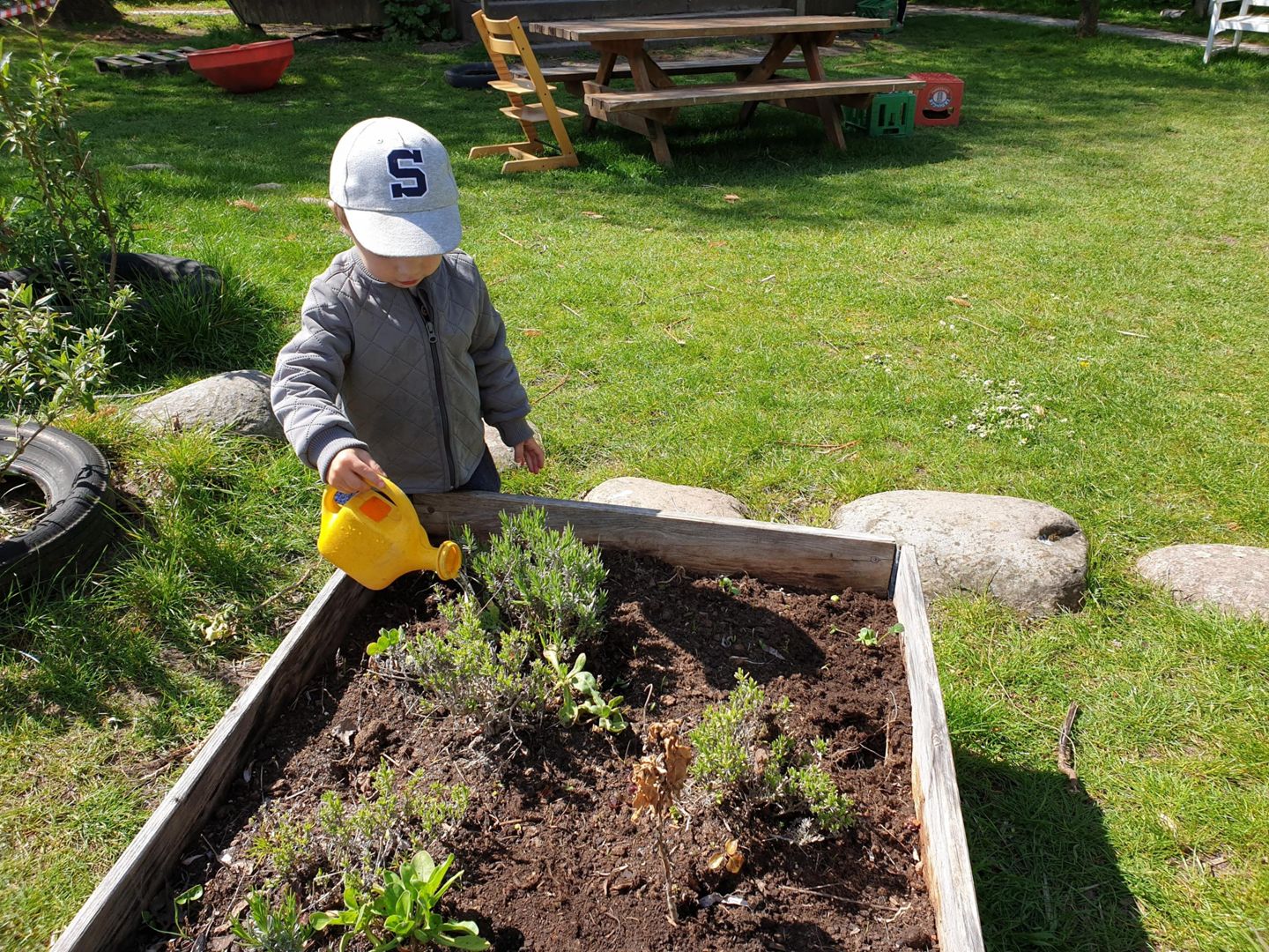 Vores børnehave er funktionsopdelt, og børnene bruger alle rum i huset og hele haven til at lege og lave aktiviteter i. Haven er fuld af gode legekroge, legetøj, klatretårne, bakke, klatretræer og spiselige frugter og planter. Vi er meget udenfor – i al slags vejr.