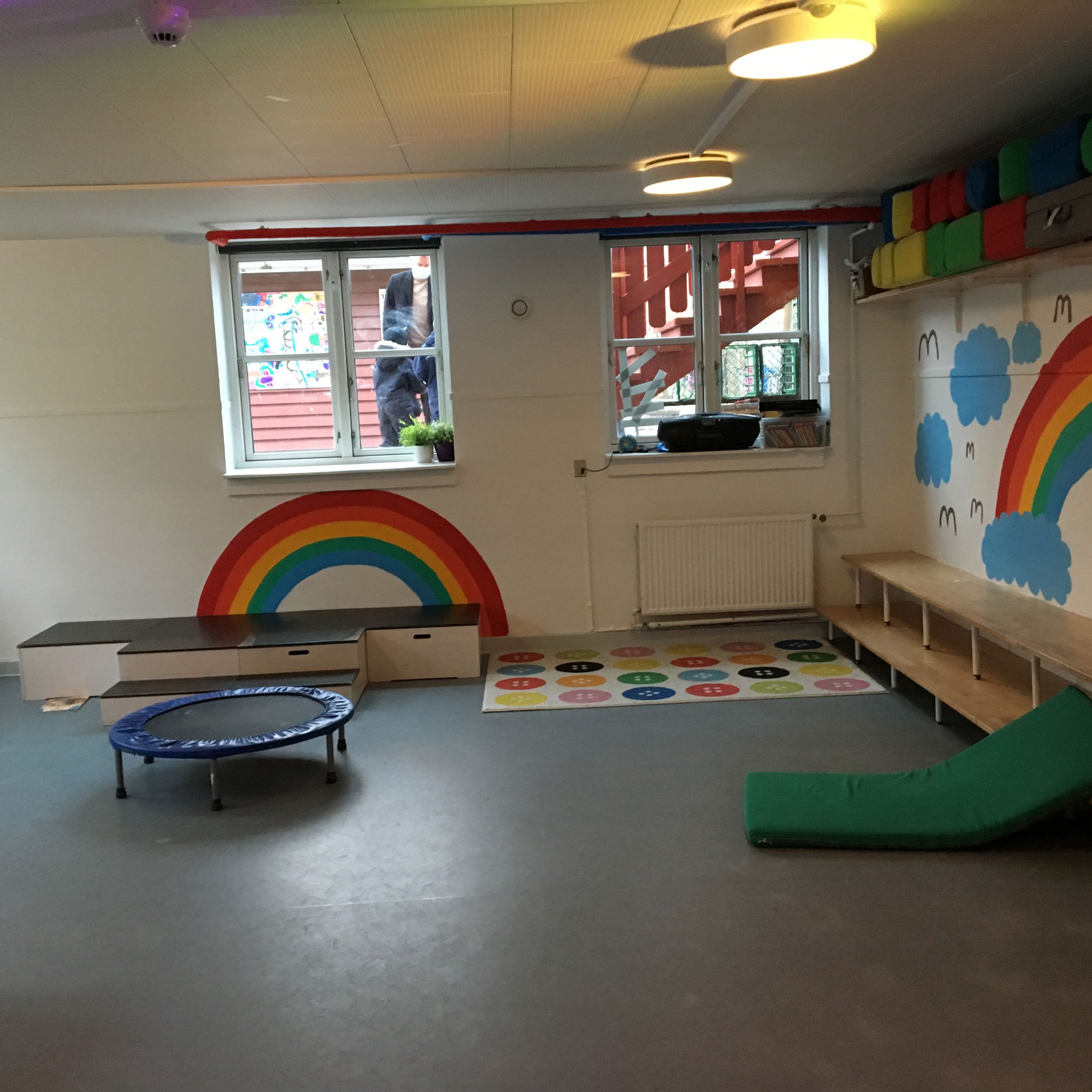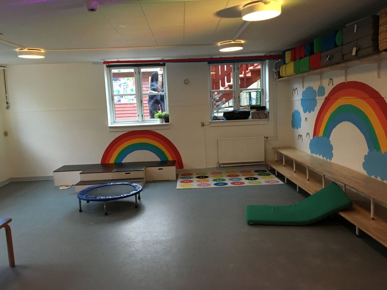 Indendørs har vi mange rum med forskellige læringsmiljøer, der veksler i takt med børnenes interesserer og behov.